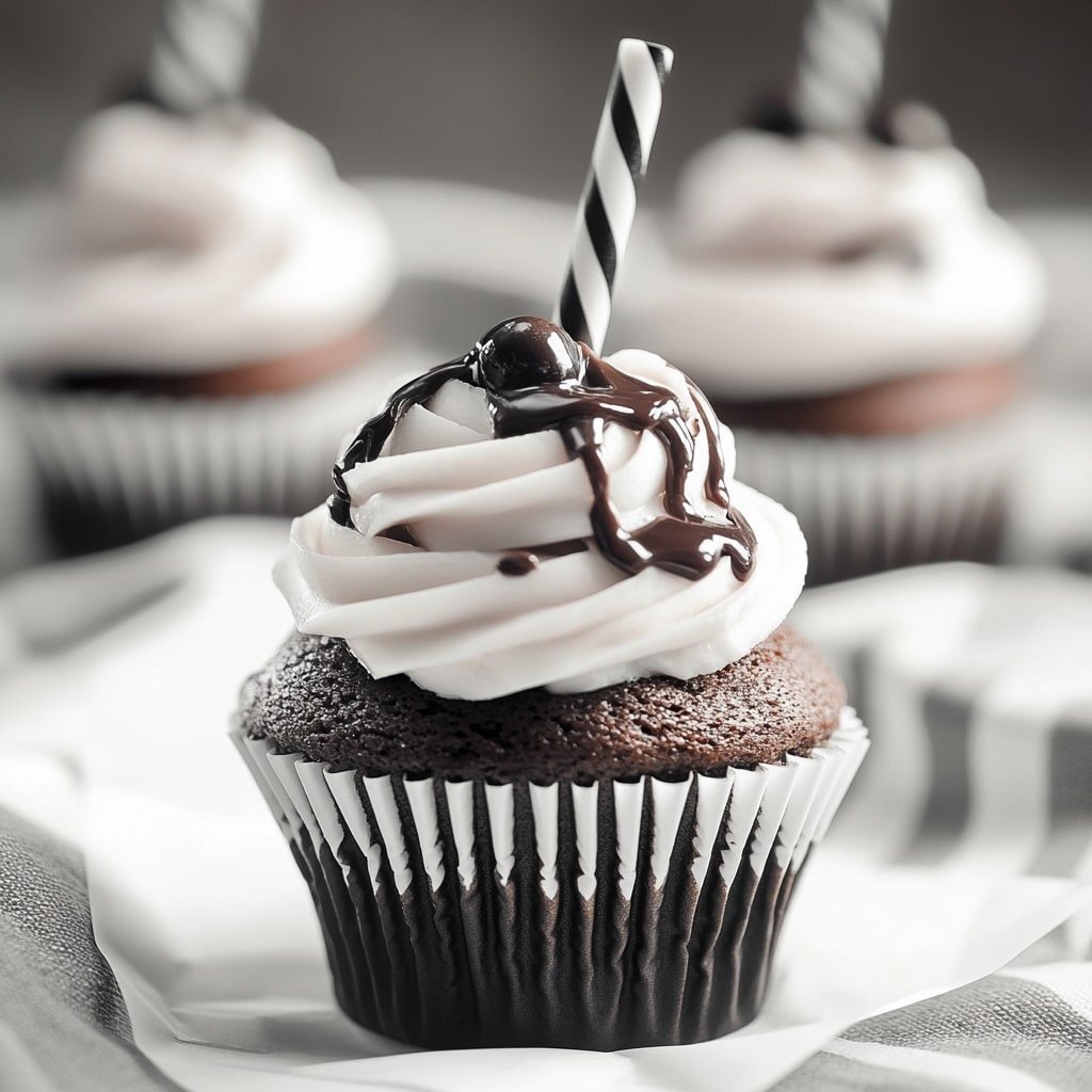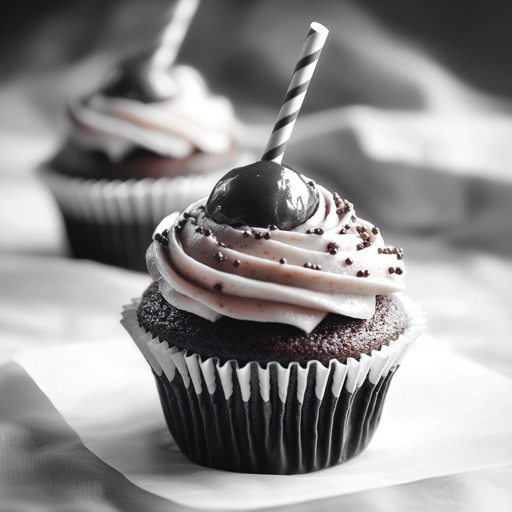 Black and White Malt Shoppe Cupcakes brilliantly capture the essence of a vintage malt shop in a modern, portable dessert.