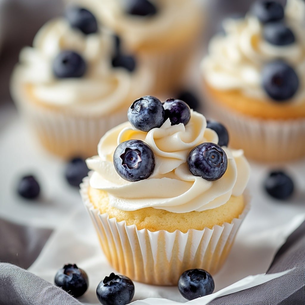 Top each cupcake with a few fresh blueberries, a sprinkle of lemon zest, and, if desired, a mint leaf or edible flower for color contrast.