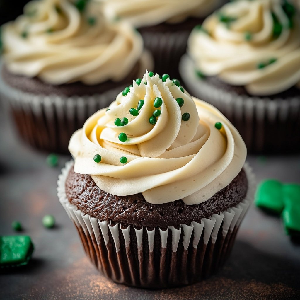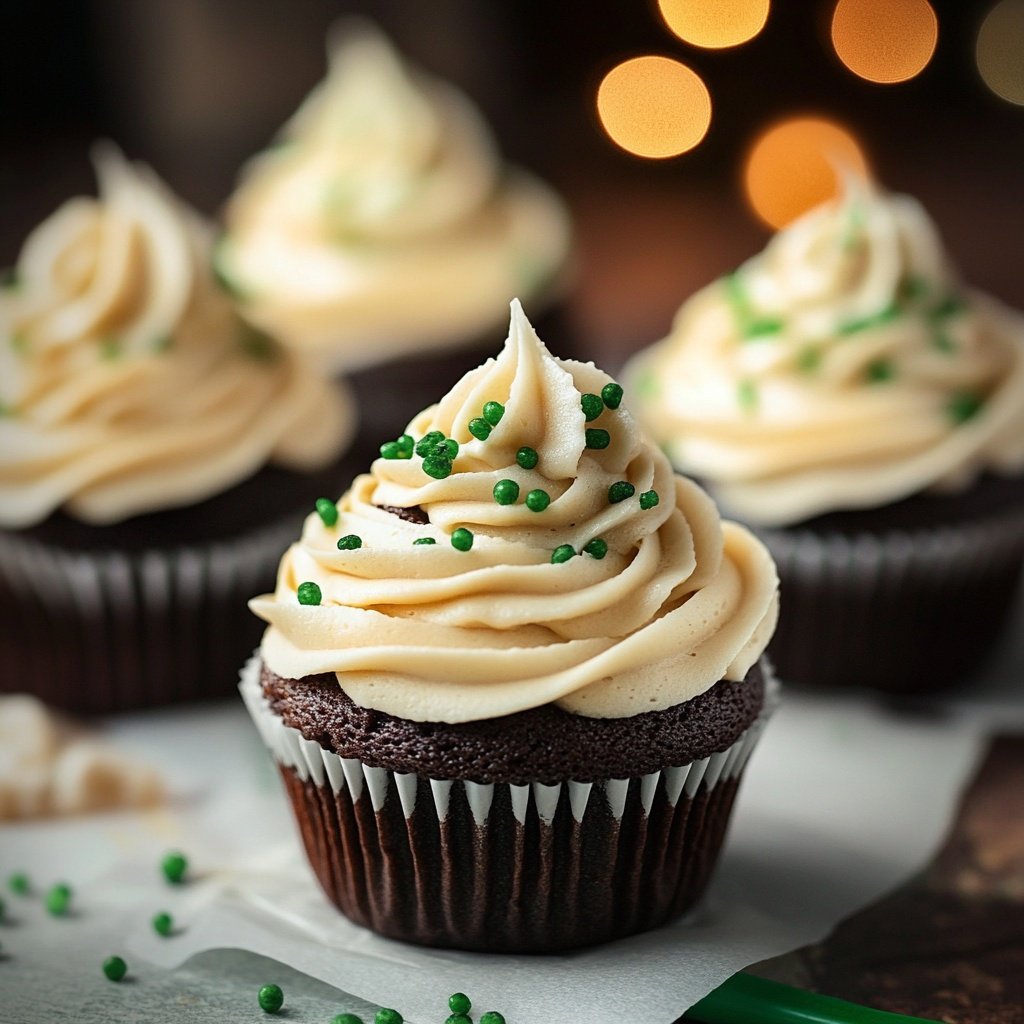 Inspired by the beloved Irish cocktail, these cupcakes combine moist Guinness chocolate cake, a creamy Jameson whiskey ganache filling, and a rich Baileys Irish Cream buttercream.